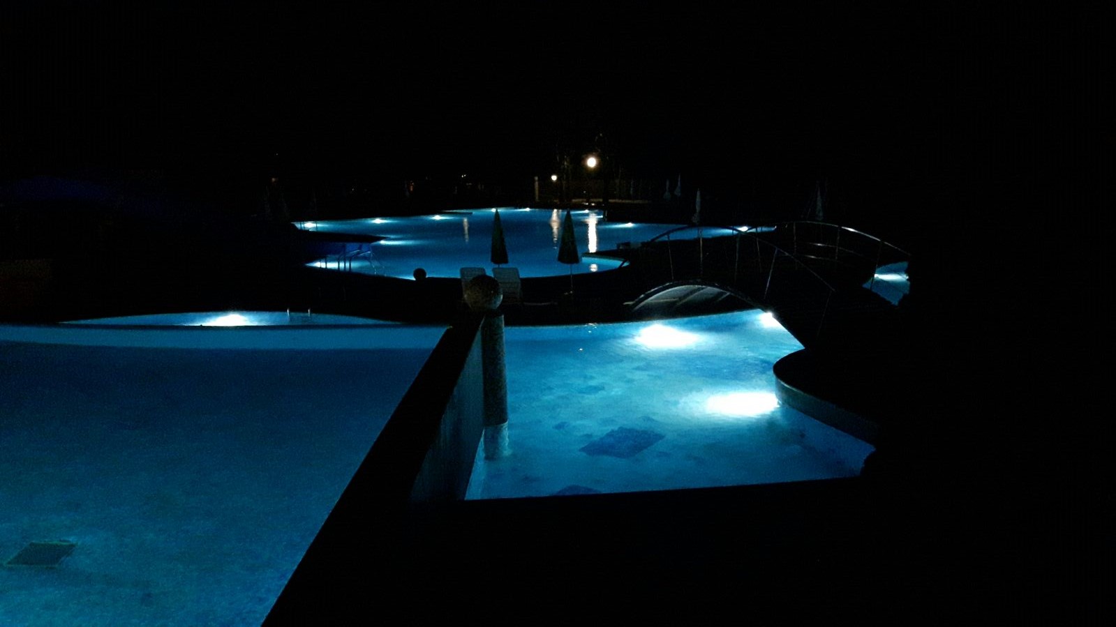 Bulgaria! Hotelul era un adevarat resort, cu mai multe corpuri, mai multe piscine, topogane, cu terenuri pentru fotbal, baschet si tenis, cu teatru de vara, unde se tineau spectacole in fiecare seara, cu zone impadurite, parcuri si alei, magic luminate.
