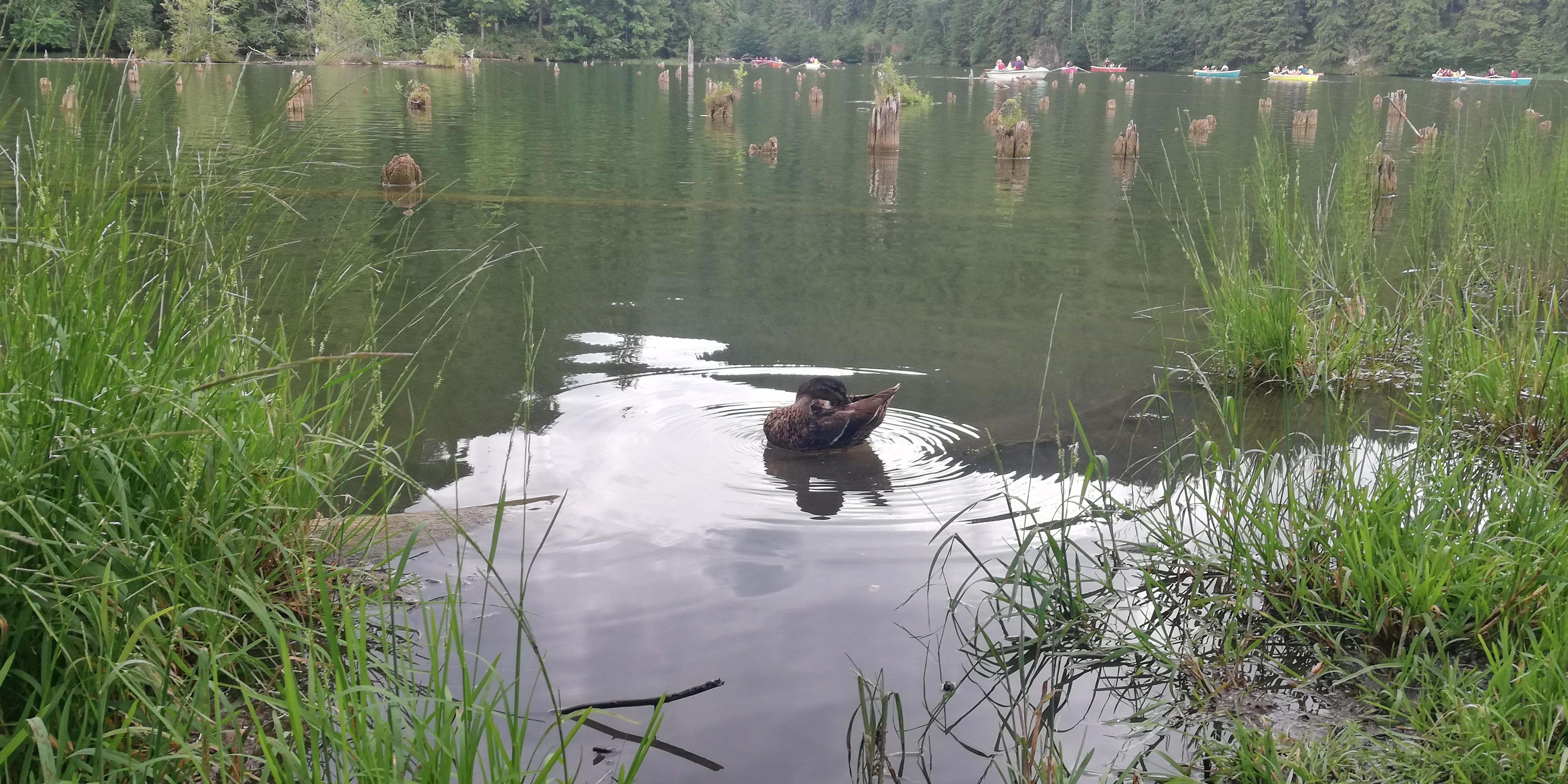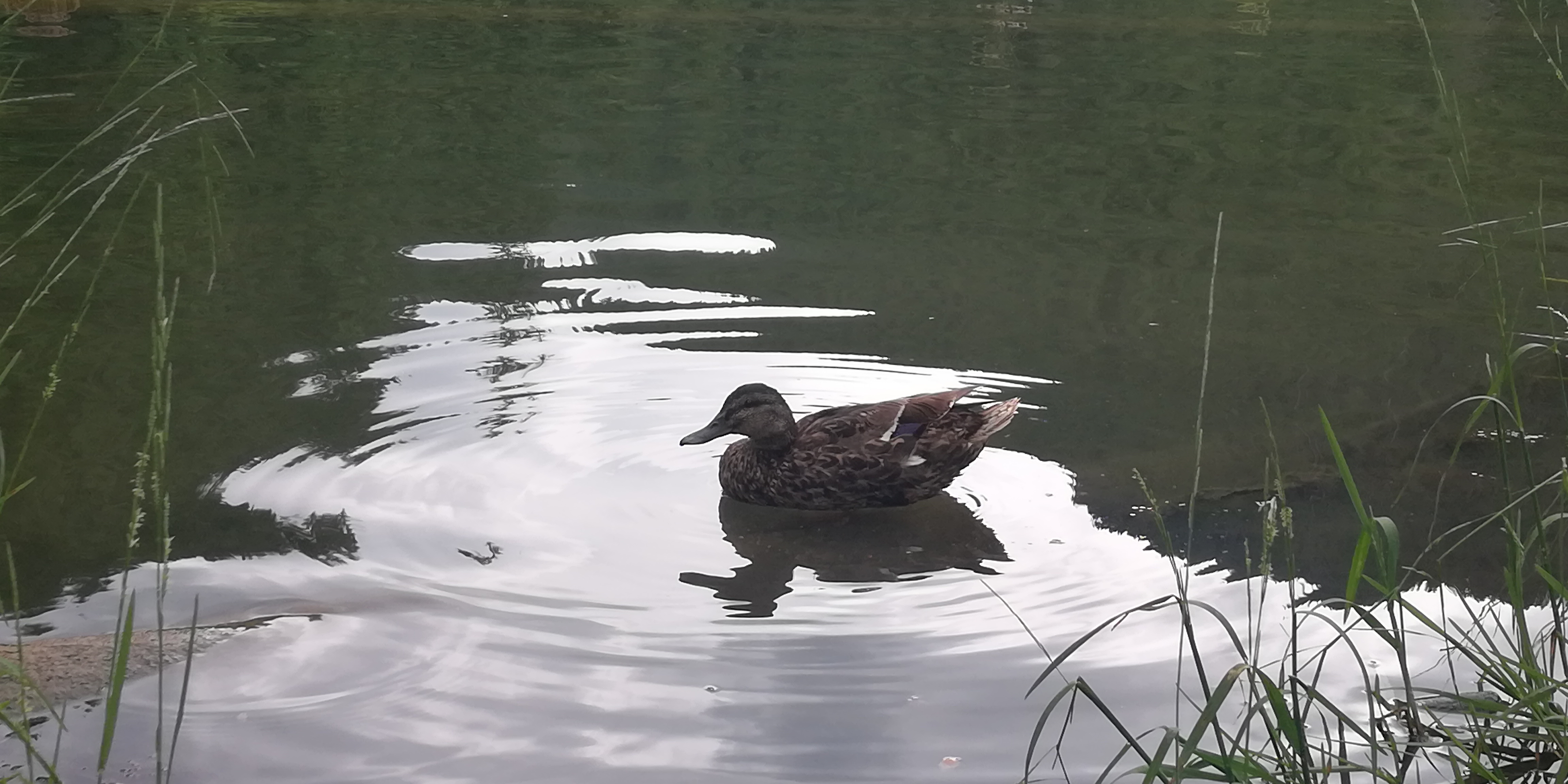 Odata ajunsi pe malul lacului, vacarmul produs de aglomeratia de pe drum, din parcare si din zona comerciala, a disparut, lasand loc unei linisti relaxante. Ne-am plimbat agale pe aleea dimprejurul lacului, facand fotografii si bucurandu-ne de liniste, de ziua calda si insorita si de peisajul extraordinar aflat sub ochii nostri. Am admirat oglinda neteda a apei, Suhardul ce se profila maiestuos in zare, precum si vegetatia bogata de tufisuri si paduri de conifere ce strajuia imprejurimile. Ne-am oprit sa privim un card de ratuste salbatice care, o parte plutea pe suprafata apei, diezmierdandu-se cu racoarea ei, in timp ce o alta parte se odihnea dormitand in stufaris.