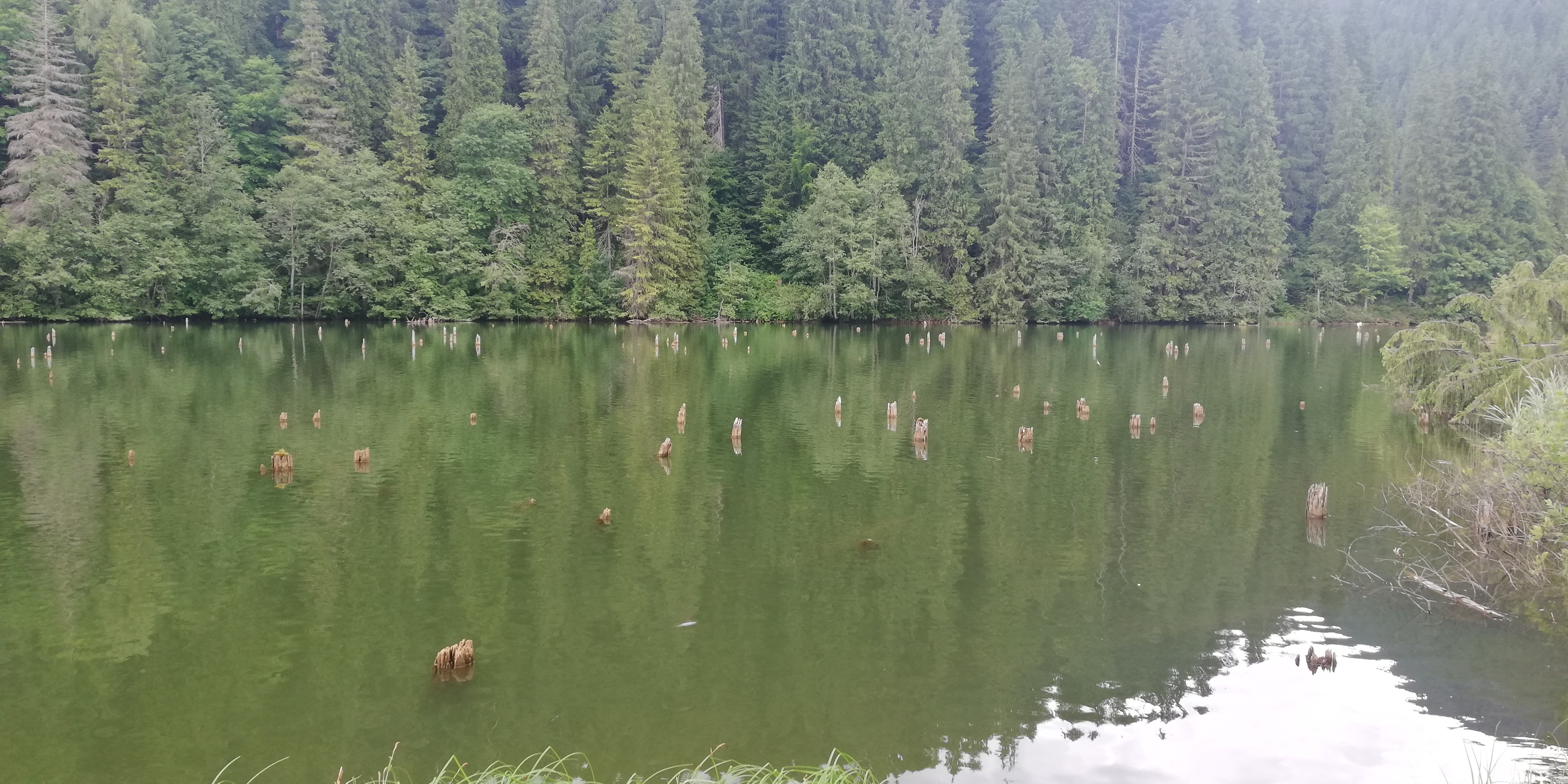 Am ramas profund impresionati, insa, de trunchiurile copacilor care, din adancuri, isi iteau capetele deasupra oglinzii lacului spre cer, cand, normal ar fi fost, ca lacul sa priveasca-n sus spre trunchiurile copacilor. Si uite cum, aici, natura ajuta la pastrarea in deplina conservare a unei paduri, fie ea si subacvatica, in pofida trecerii timpului. Soarta acestei paduri este bine stabilita, paradoxal cu soarta multor altor paduri normale, aflate „inca” la locul lor, pe creste.